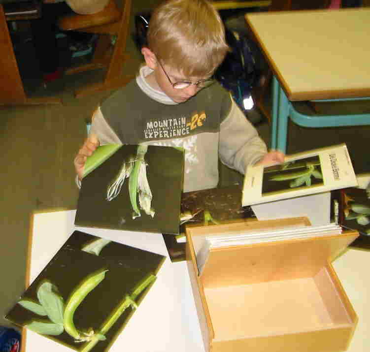 Erstklässler bei den Drittklässlern. Er findet die Reihefolge der Bildtafeln. |