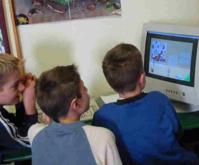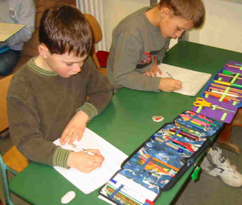 Kinder die miteinander harmonieren, ziehen sich mit dem Informationsmaterial zurück. Für Fragen ist der Lehrer in der Nähe. |