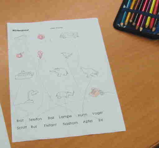 Von mir sind nur die Anfangsbuchstaben. Sie hat in einer Schulstunde sicher hundert Wörter geschrieben. |