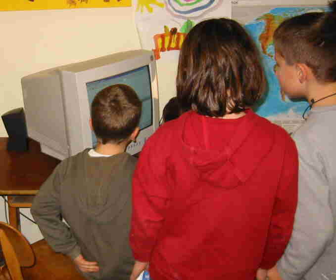 Der Lehrer hat Fotos von allen Kindern in den Computer geladen. |